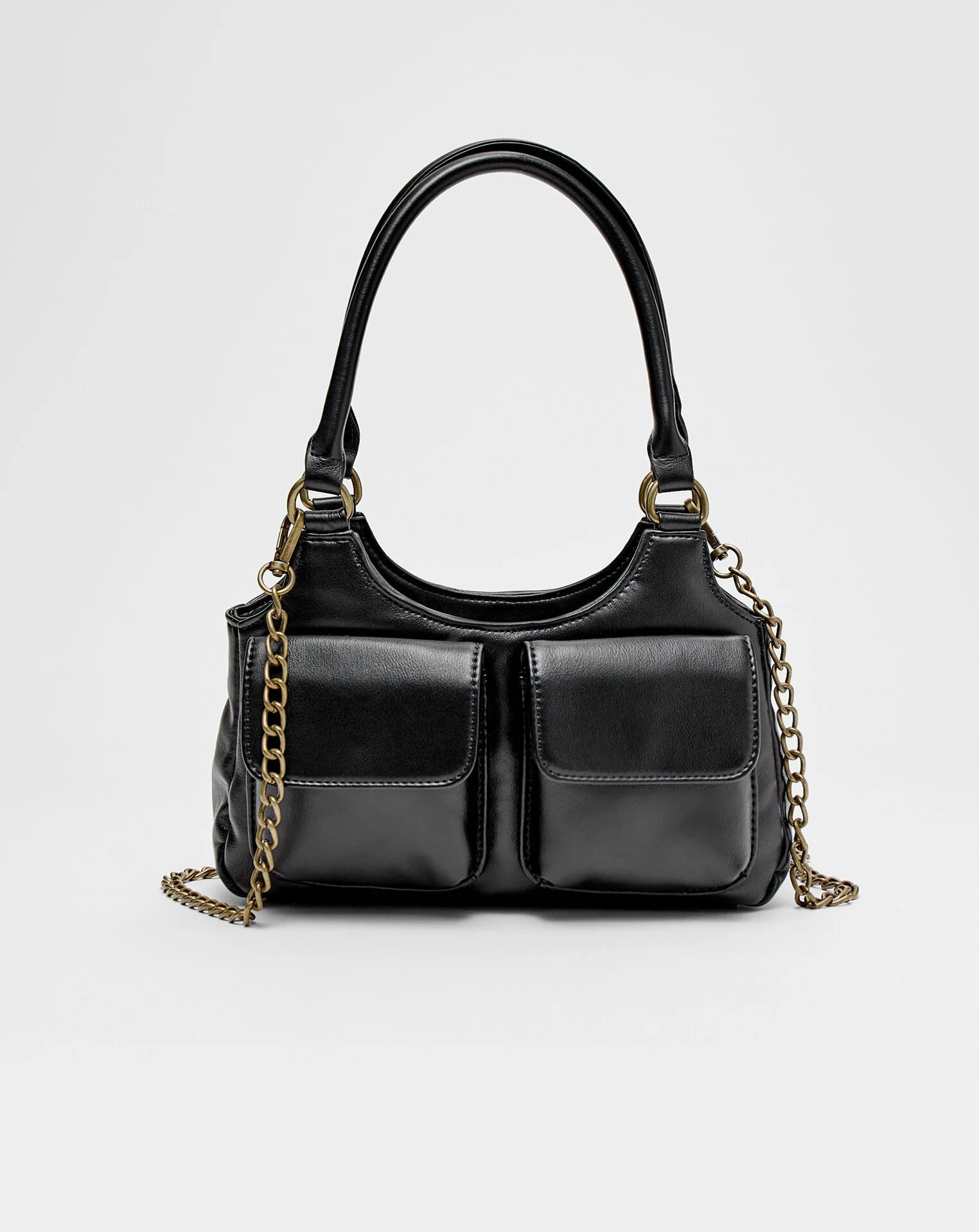 کیف زنانه استرادیواریوس مدل 03652511-I2023 به رنگ مشکی دارای دو جیب بیرونی است.