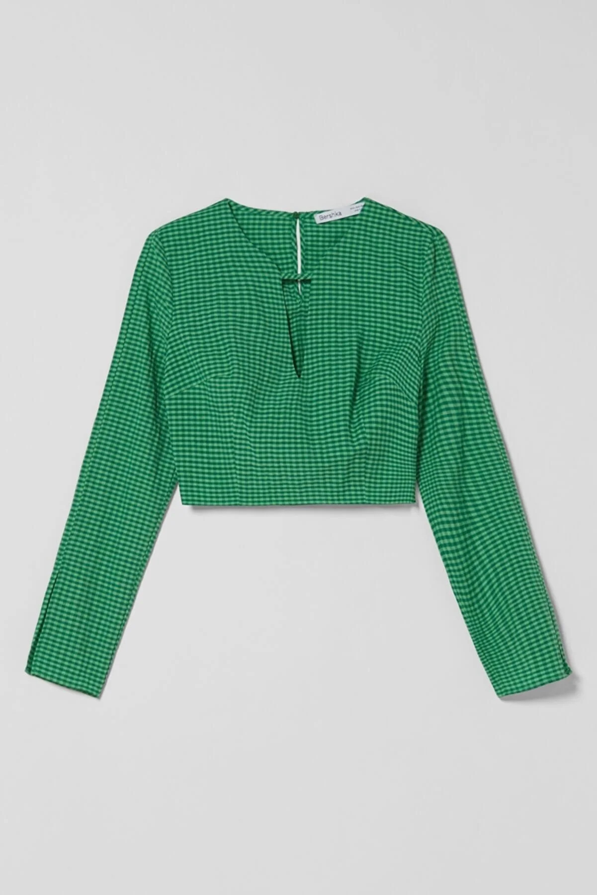 این بلوز آستین بلند زنانه دارای برچسب زیست محیطی برشکا و تهیه شده از الیاف پایدار حافظ محیط زیست است.
