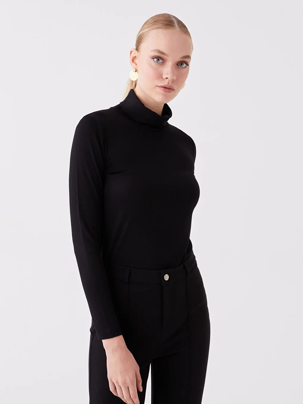 قواره این بلوز یقه اسکی زنانه السی وایکیکی اسلیم یا جذب است و به خوبی فرم بدن را می گیرد.