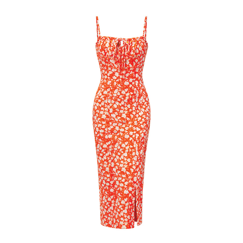 این پیراهن زنانه به رنگ قرمز با طرح جذاب گلدار خود مناسب فصل بهار و پاییز برای استفاده در مهمانی است.