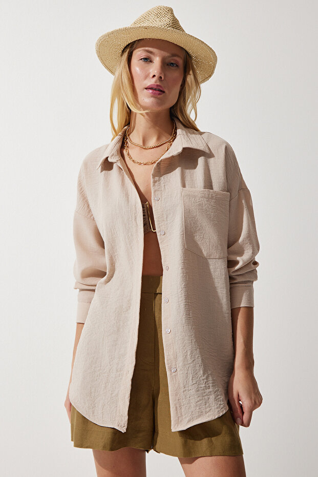 این بلوز زنانه اورسایز بژ از برند هپینس ایستانبول یک گزینه کژوال و راحت برای ستهای روزمره و شهری است. طراحی Oversize و فرم آزاد این بلوز باعث میشود تا پوشیدن آن بسیار راحت باشد و برای انواع اندامها مناسب باشد، در حالی که یقه پیراهنی ظاهر مرتب و کلاسیکی به استایل شما میدهد.
