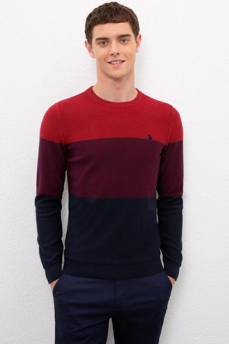 جنس پارچه تریکو این پلیور مردانه یو اس پولو 100 درصد پنبه است