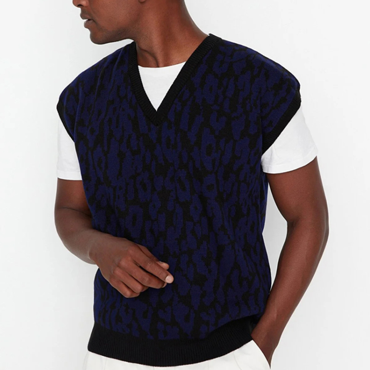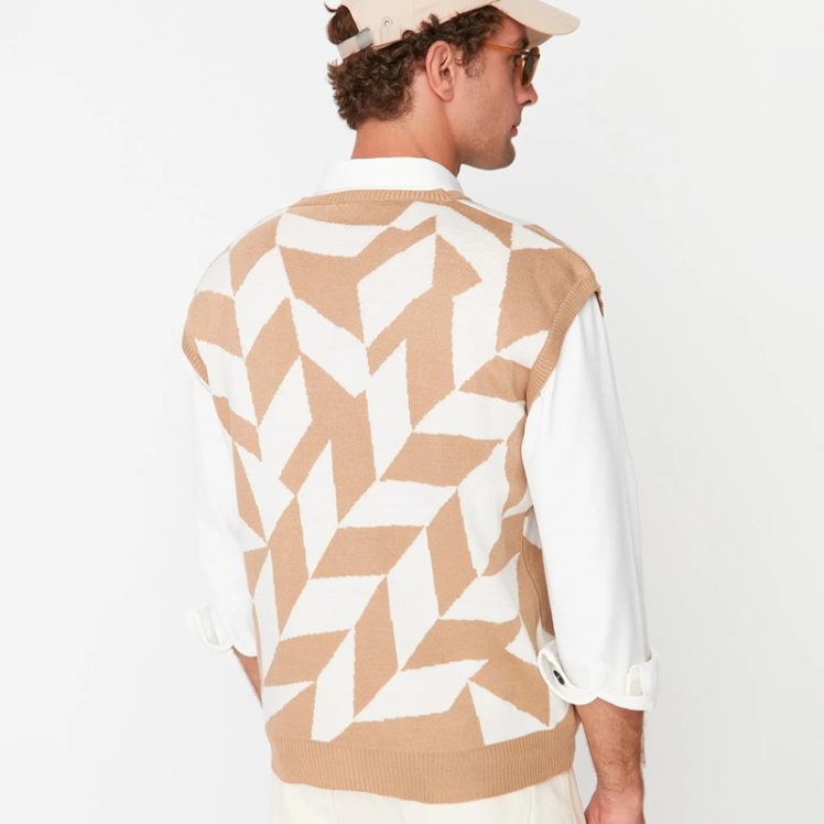 این ژیله مردانه ترندیول قواره آزاد دارد و کمی در تن گشاد می ایستد.