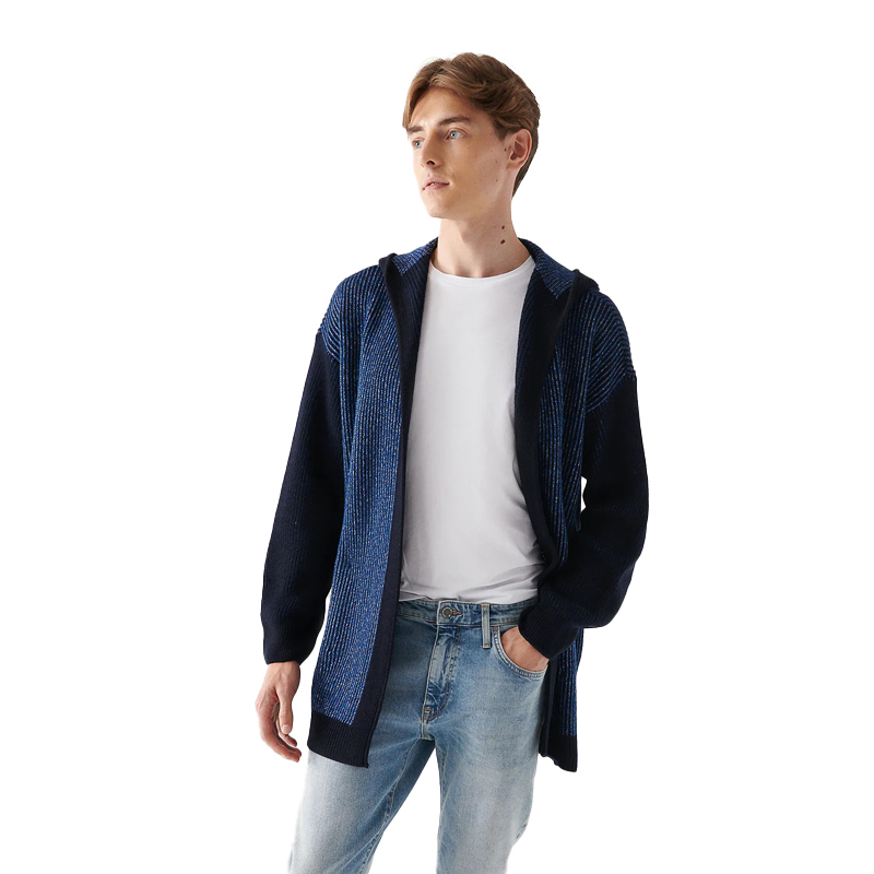 قواره این ژاکت مردانه ماوی آزاد است و مناسب استفاده های روزمره و مهمانی است. ژاکت بافت مردانه کلاهدار مدل لش و آزاد دارد.