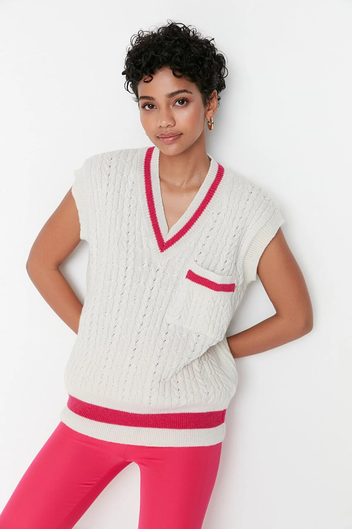 این ژیله بافت زنانه ترندیول قواره نسبتا آزادی دارد و تا نیمی از باسن را می پوشاند.