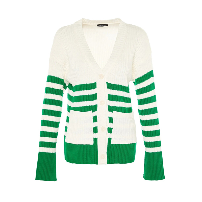 این ژاکت بافت زنانه ترندیول با طرح راه راه از پارچه بافت بسیار لطیف با الیاف 100 درصد طبیعی اکریلیک تهیه شده است.