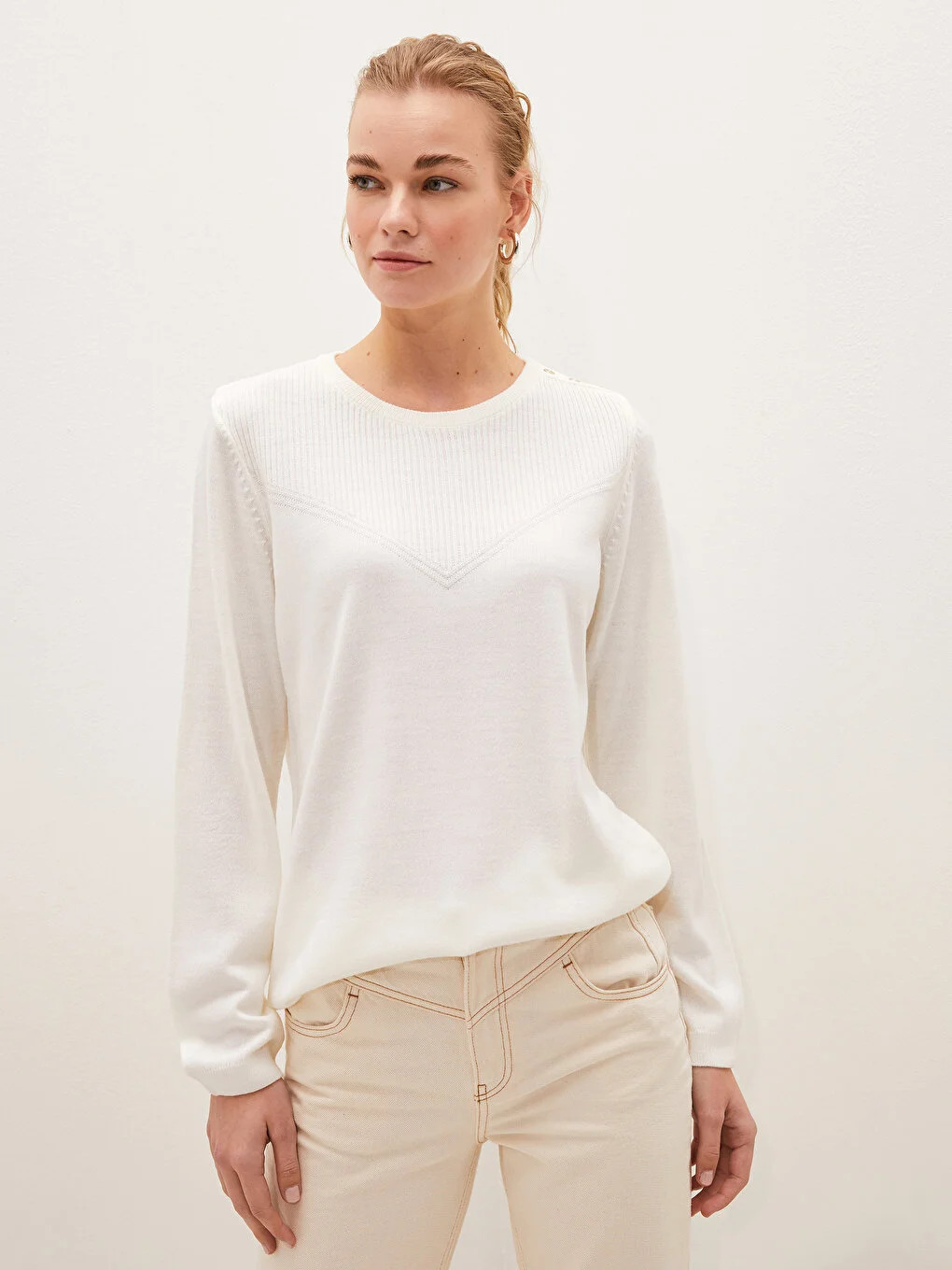 جنس پارچه پلیور زنانه ال سی وایکیکی از الیاف 100% طبیعی اکریلیک تهیه شده است.