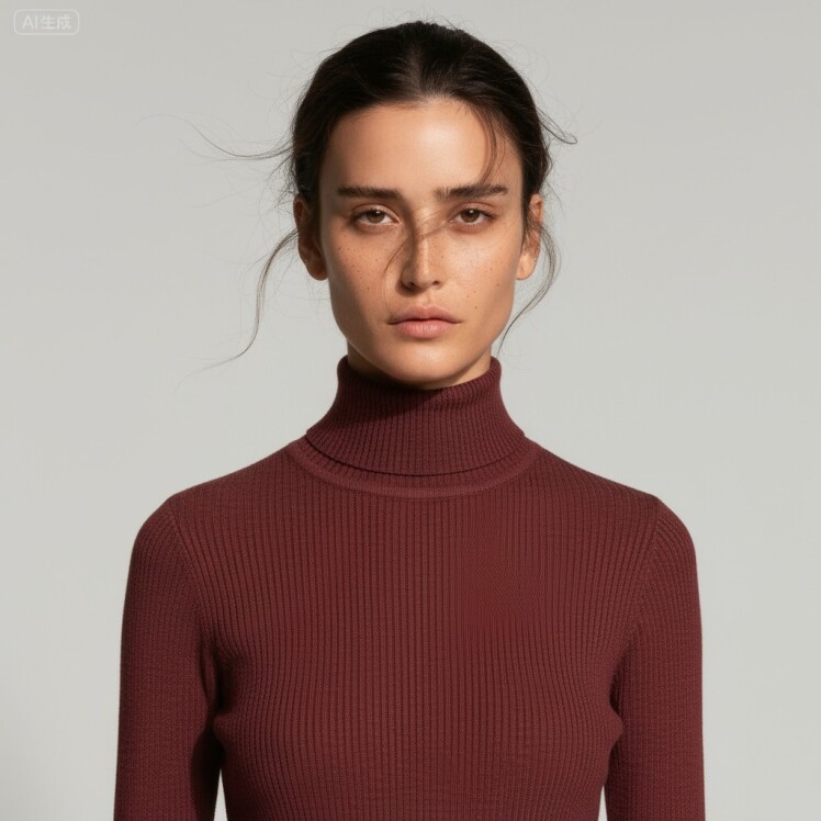 مدل در تصویر سایز اس را به تن دارد. قواره این پلیور یقه اسکی اسلیم فیت یا جذب است.