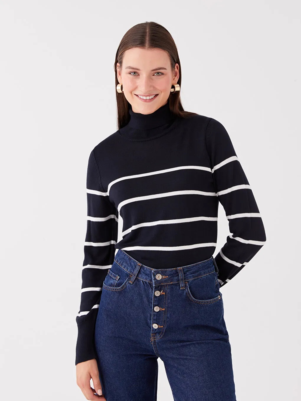 اگر به دنبال یک آیتم کاربردی برای استایلهای لایهلایه زمستانی یا یک پوشش ظریف و شیک برای محیط کار و روزمره هستید، پلیور یقه اسکی زنانه ال سی وایکیکی مدل W35216Z8 بهترین گزینه است. این پلیور با ترکیب رنگ سرمهای کلاسیک و خطوط افقی، ظاهری کشیده و جذاب به اندام شما میبخشد.