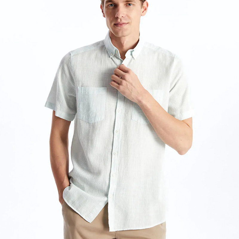 قواره پیراهن مردانه ال سی وایکیکی استاندارد یا رگولار است و یقه این پیراهن مردانه برگردان است.