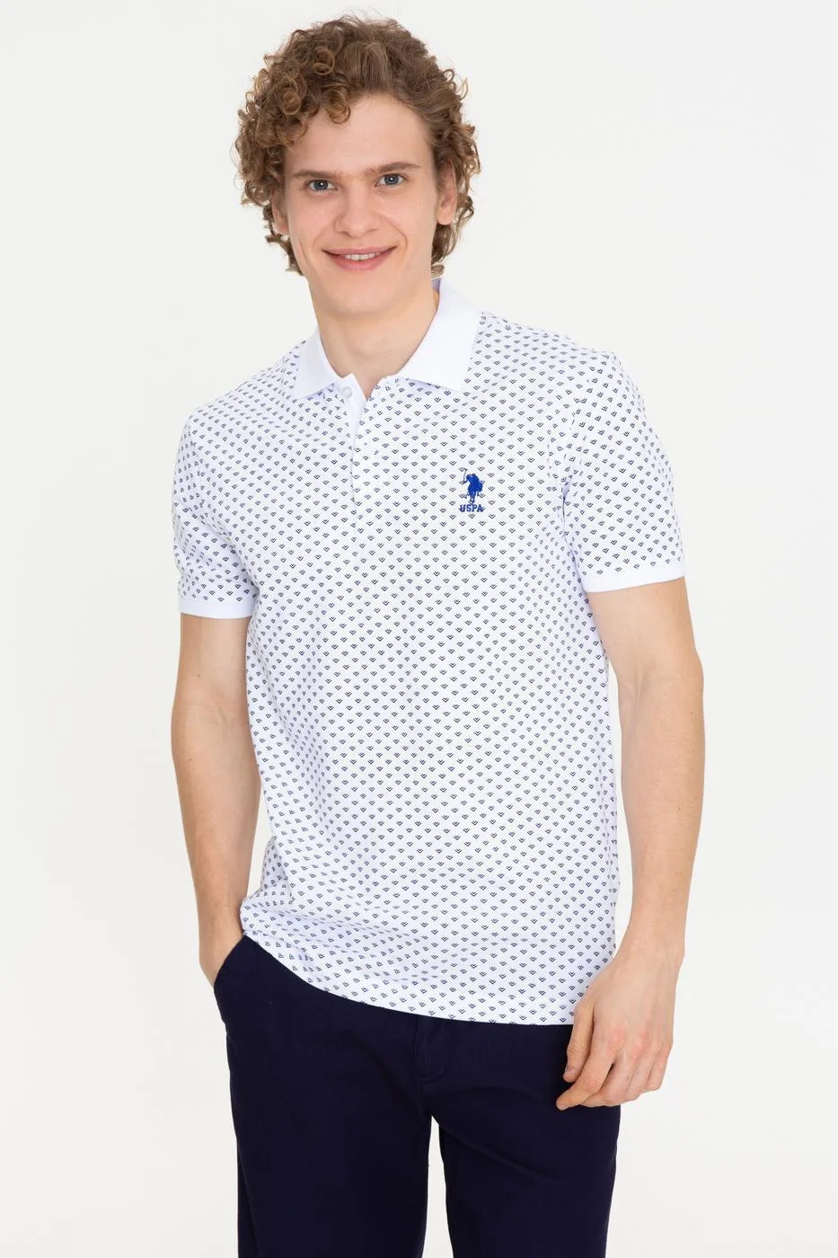 پولوشرت سفید طرح دار یو اس پولو