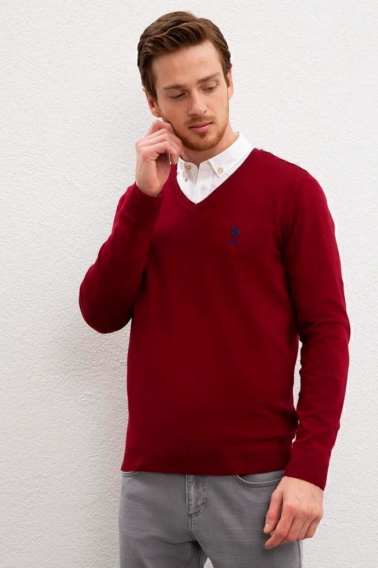 پلیور یقه هفت مردانه رنگ شرابی یو اس پولو