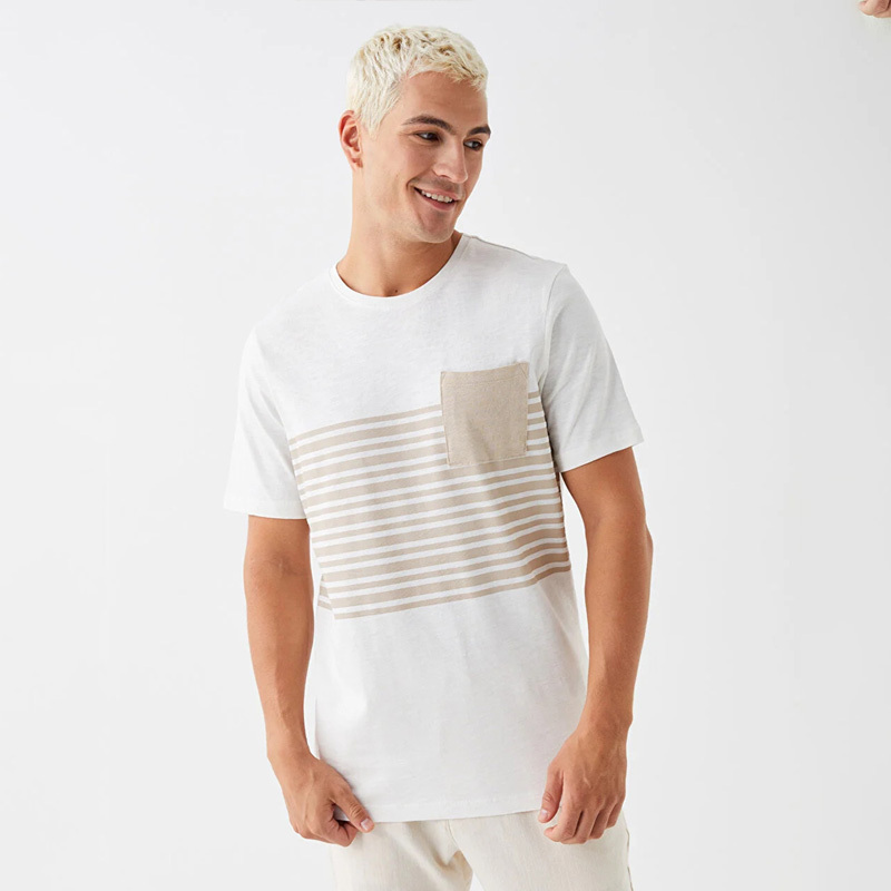 طرح راه راه افقی و با یک جیب در سمت چپ تی شرت مردانه السی وایکیکی
