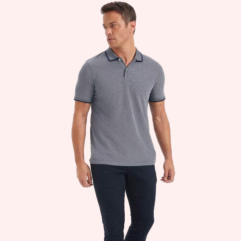 مدل داخل تصویر پولوشرت مردانه دفکتو سایز ام بر تن دارد. قواره پولوشرت دفکتو استاندارد یا رگولار است.