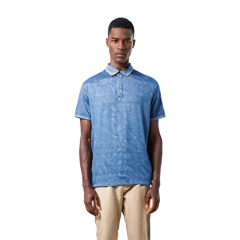 این پولوشرت آستین کوتاه مردانه دارای یقه برگردان است و با سه دکمه بسته می شود.
