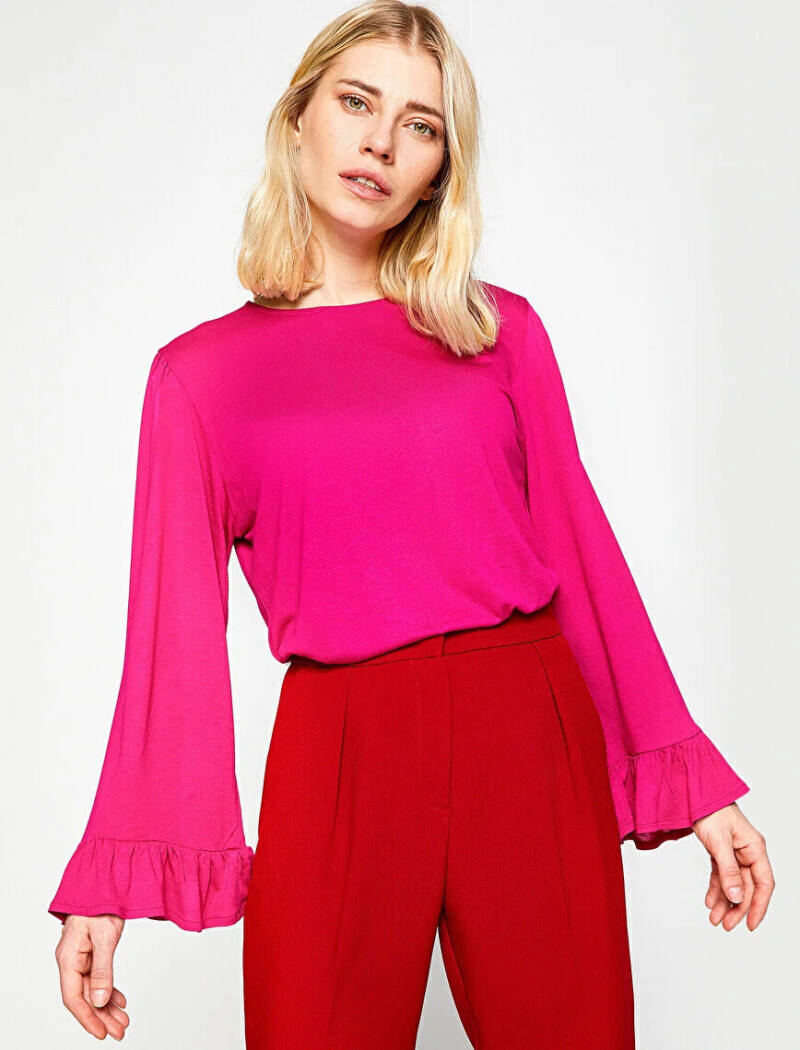 تیشرت آستین پلیسه سرخابی زنانه کوتون