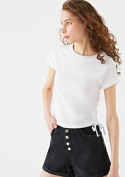 از هر دو طرف کش برای جمع شدن تیشرت زنانه ماوی وجود دارد