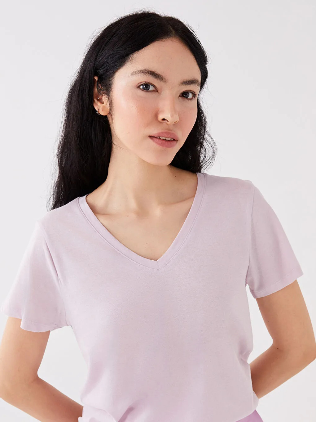 تیشرت زنانه آستین کوتاه ال سی وایکیکی ساده و مناسب فصل تابستان است