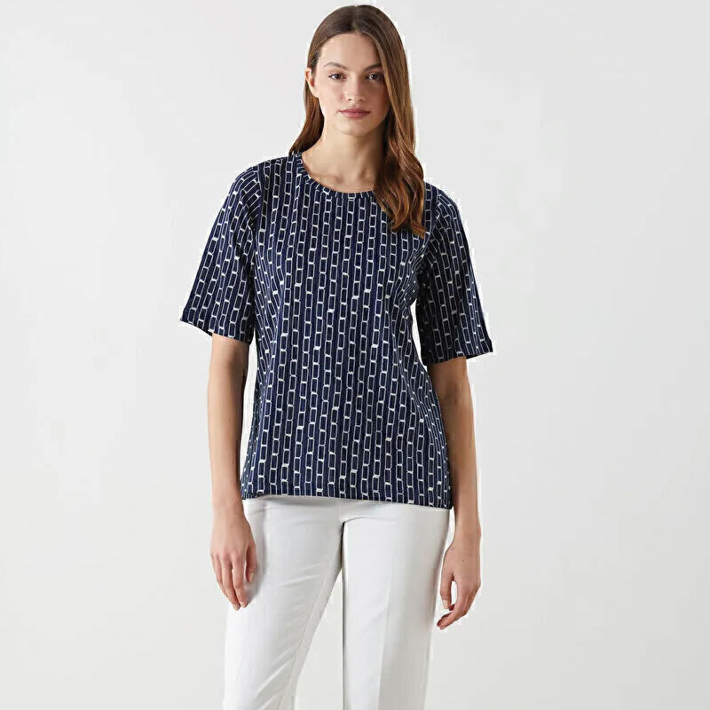 مدل تصویر سایز ام این تیشرت زنانه طرحدار ال سی را بر تن دارد. طرح روی تیشرت زنانه چاپ است.