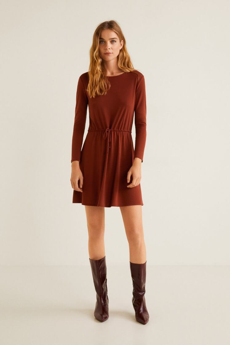 الگو تخت از پارچه بافت یقه گرد آستین بلند