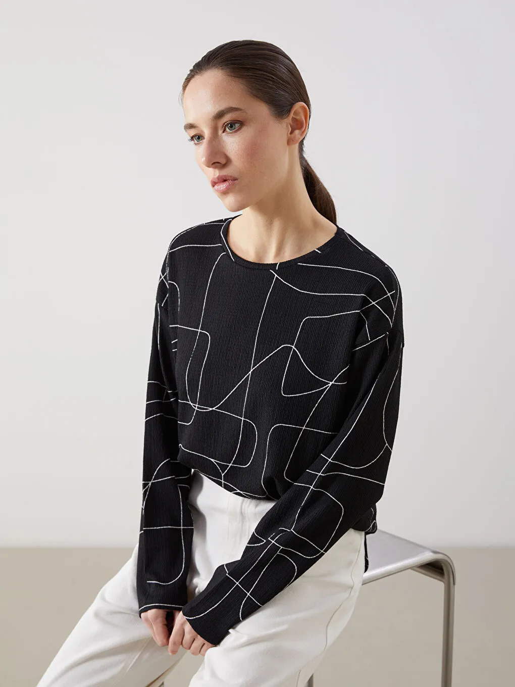 عنوان در سایت اصلی ال سی: LCWAIKIKI Classic Ekru Bisiklet Yaka Desenli Oversize Kadın Tişört